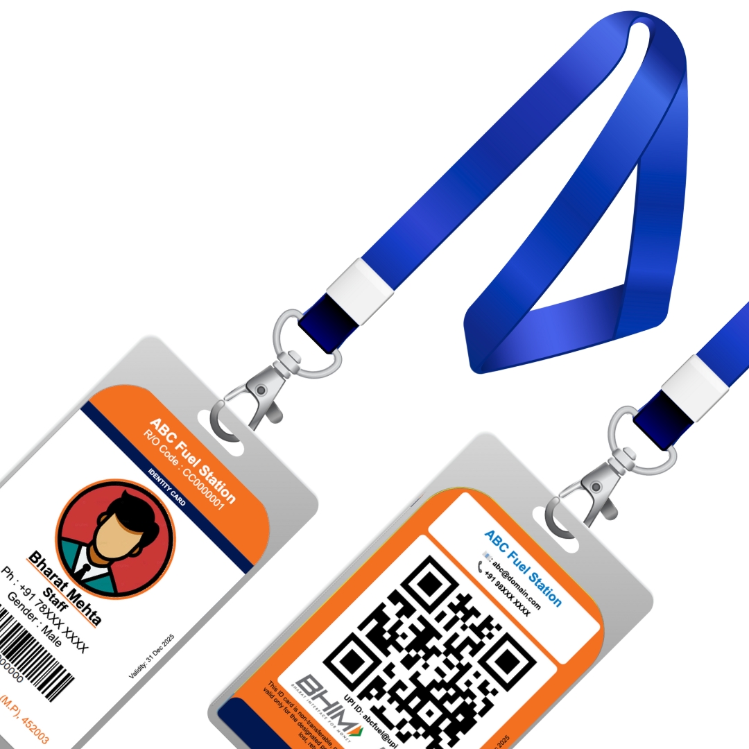 Premium IOC-branded Smart ID card with secure payment QR code, generated via the InDhanPay App. Durable, professional, and customized for your fuel company.